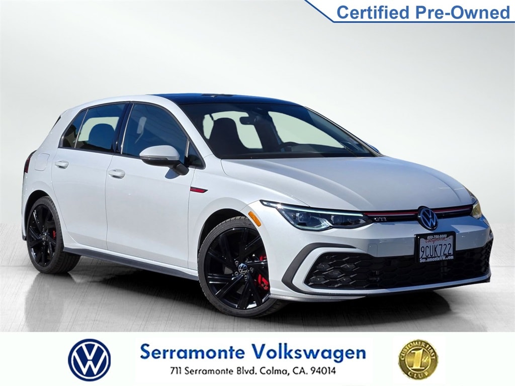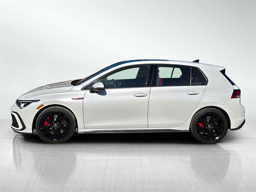 New Price! Clean CARFAX. CARFAX One-Owner. White 2022 Volkswagen Golf GTI 2.0T SE FWD 7-Speed DSG Automatic with Tiptronic 2.0L TSI DOHC 112 POINT INSPECTION, NAVIGATION, 4-Wheel Disc Brakes, 9 Speakers, ABS brakes, Air Conditioning, Alloy wheels, AM/FM radio: SiriusXM with 360L, Auto-dimming Rear-View mirror, Automatic temperature control, Brake assist, Cloth Seating Surfaces, Compass, Delay-off headlights, Dual front impact airbags, Dual front side impact airbags, Electronic Stability Control, Emergency communication system: VW Car-Net services (capabilities require enrollment or subscription), Exterior Parking Camera Rear, Forward collision: FCW w/Autonomous Emergency Braking mitigation, Four wheel independent suspension, Front anti-roll bar, Front Bucket Seats, Front Center Armrest, Fully automatic headlights, harman/kardon® Speakers, Heated door mirrors, Heated front seats, Heated Front Top Sport Seats, Heated steering wheel, Lane Departure Warning System, Leather steering wheel, Low tire pressure warning, Navigation System, Occupant sensing airbag, Outside temperature display, Overhead airbag, Panic alarm, Power door mirrors, Power driver seat, Power moonroof: Panoramic, Power passenger seat, Power steering, Power windows, Radio data system, Radio: MIB3 Discover Pro w/10" Touchscreen Navi, Rain sensing wipers, Rear anti-roll bar, Rear window defroster, Rear window wiper, Remote keyless entry, Security system, Speed control, Speed-sensing steering, Speed-Sensitive Wipers, Split folding rear seat, Spoiler, Sport steering wheel, Steering wheel mounted audio controls, Tachometer, Telescoping steering wheel, Tilt steering wheel, Traction control, Trip computer, Turn signal indicator mirrors, Variably intermittent wipers, Wheels: 18" x 7.5J 2-Tone Machined Alloy.