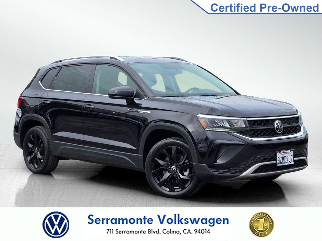 New Price! CARFAX One-Owner. Certified. Deep Black 2022 Volkswagen Taos 1.5T SE FWD 8-Speed Automatic with Tiptronic 1.5L I4 Turbocharged DOHC 16V LEV3-SULEV30 158hp 112 POINT INSPECTION, 18" Black Alloy Wheels, 4-Wheel Disc Brakes, 6 Speakers, ABS brakes, Air Conditioning, Alloy wheels, AM/FM radio: SiriusXM with 360L, Brake assist, CloudTex & Cloth Seating Surfaces, Compass, Delay-off headlights, Dual front impact airbags, Dual front side impact airbags, Electronic Stability Control, Emergency communication system: Car-Net, Exterior Parking Camera Rear, Front anti-roll bar, Front Bucket Seats, Front Center Armrest, Front Strut Rear Torsion Beam Suspension, Front wheel independent suspension, Fully automatic headlights, Heated door mirrors, Heated Front Comfort Seats, Heated front seats, Illuminated entry, Leather Shift Knob, Low tire pressure warning, Occupant sensing airbag, Outside temperature display, Overhead airbag, Panic alarm, Power door mirrors, Power driver seat, Power steering, Power windows, Radio data system, Radio: MIB3 Composition Media AM/FM/HD, Rear anti-roll bar, Rear window defroster, Rear window wiper, Remote keyless entry, Security system, Speed control, Speed-sensing steering, Split folding rear seat, Steering wheel mounted audio controls, Tachometer, Telescoping steering wheel, Tilt steering wheel, Traction control, Trip computer, Variably intermittent wipers, Wheels: 18" 2-Tone Machined Alloy.