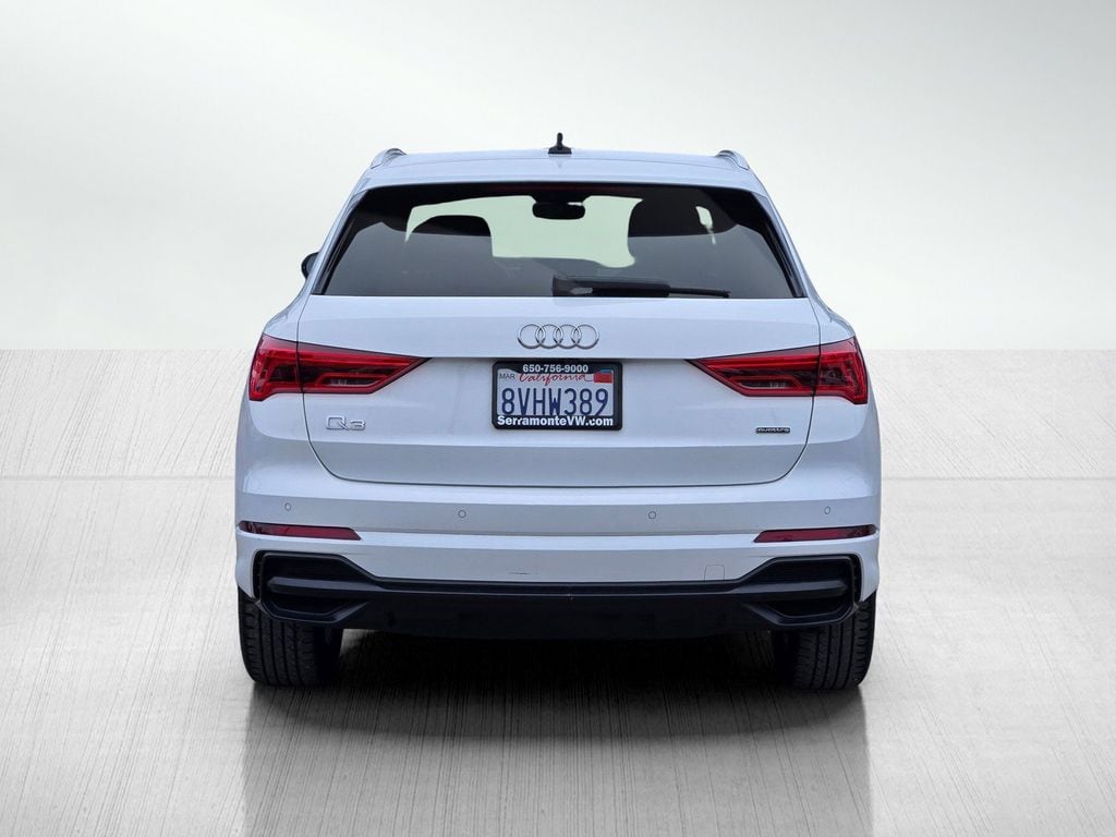 Clean CARFAX. Glacier White Metallic 2021 Audi Q3 Premium S Line quattro quattro 8-Speed Automatic with Tiptronic 2.0L 4-Cylinder TFSI 10 Speakers, 4-Wheel Disc Brakes, ABS brakes, Air Conditioning, Alloy wheels, AM/FM radio, Audi smartphone interface (Apple CarPlay/Android Auto), Auto High-beam Headlights, Automatic temperature control, Brake assist, Delay-off headlights, Dual front impact airbags, Dual front side impact airbags, Electronic Stability Control, Exterior Parking Camera Rear, Four wheel independent suspension, Front anti-roll bar, Front Bucket Seats, Front Center Armrest, Front dual zone A/C, Fully automatic headlights, Heated door mirrors, Heated Front Bucket Seats, Heated front seats, Knee airbag, Leather Seating Surfaces, Leather Shift Knob, Leather steering wheel, Low tire pressure warning, Occupant sensing airbag, Outside temperature display, Overhead airbag, Panic alarm, Power door mirrors, Power driver seat, Power Liftgate, Power moonroof, Power passenger seat, Power steering, Power windows, Radio data system, Radio: Audi Sound System, Rain sensing wipers, Rear air conditioning, Rear anti-roll bar, Rear fog lights, Rear window defroster, Rear window wiper, Remote keyless entry, Speed control, Speed-sensing steering, Split folding rear seat, Steering wheel mounted audio controls, Tachometer, Telescoping steering wheel, Tilt steering wheel, Traction control, Trip computer, Turn signal indicator mirrors, Variably intermittent wipers, Wheels: 18" 5-Twin-Spoke Dynamic Design.