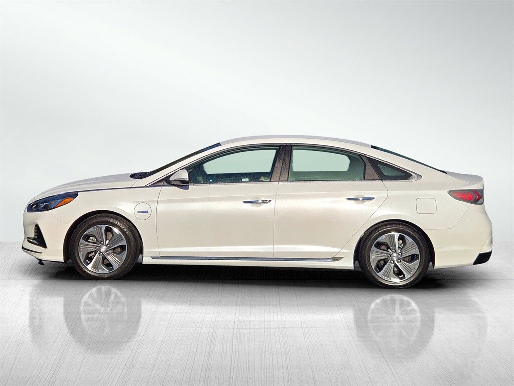 Hyper White 2019 Hyundai Sonata Plug-In Hybrid Limited FWD 6-Speed Automatic I4 112 POINT INSPECTION, NAVIGATION, I4, 4-Wheel Disc Brakes, 9 Speakers, ABS brakes, Air Conditioning, Alloy wheels, AM/FM radio: SiriusXM, Apple CarPlay & Android Auto, Auto High-beam Headlights, Auto-dimming Rear-View mirror, Automatic temperature control, Brake assist, Compass, Delay-off headlights, Dual front impact airbags, Dual front side impact airbags, Electronic Stability Control, Emergency communication system: Blue Link, Exterior Parking Camera Rear, Four wheel independent suspension, Front anti-roll bar, Front Bucket Seats, Front Center Armrest, Front dual zone A/C, Fully automatic headlights, Garage door transmitter: HomeLink, Heated & Ventilated Front Bucket Seats, Heated door mirrors, Heated front seats, Heated steering wheel, Integrated Memory System (IMS), Knee airbag, Leather Seating Surfaces, Leather Shift Knob, Low tire pressure warning, Memory seat, Navigation System, Occupant sensing airbag, Option Group 01, Outside temperature display, Overhead airbag, Panic alarm, Power door mirrors, Power driver seat, Power passenger seat, Power steering, Power windows, Radio data system, Radio: AM/FM/SiriusXM/MP3 Infinity Audio System, Rear anti-roll bar, Rear Parking Sensors, Rear window defroster, Remote keyless entry, Security system, Speed control, Speed-sensing steering, Speed-Sensitive Wipers, Steering wheel mounted audio controls, Telescoping steering wheel, Tilt steering wheel, Traction control, Trip computer, Turn signal indicator mirrors, Variably intermittent wipers, Ventilated front seats, Wheels: 17" x 7.0J Eco-Spoke Alloy.