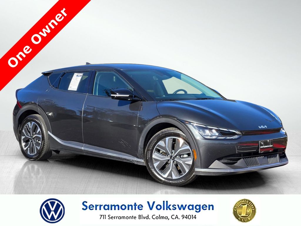 Clean CARFAX. CARFAX One-Owner. Certified. Interstellar Gray 2023 Kia EV6 Light RWD 1-Speed Automatic Electric Motor 112 POINT INSPECTION, NAVIGATION, 4-Wheel Disc Brakes, 6 Speakers, ABS brakes, Air Conditioning, Alloy wheels, AM/FM radio: SiriusXM, Apple CarPlay & Android Auto, Auto High-beam Headlights, Auto-dimming Rear-View mirror, Automatic temperature control, Brake assist, Delay-off headlights, Dual front impact airbags, Dual front side impact airbags, Electronic Stability Control, Emergency communication system, Four wheel independent suspension, Front anti-roll bar, Front Bucket Seats, Front Center Armrest, Front dual zone A/C, Fully automatic headlights, Heated door mirrors, Heated Front Bucket Seats, Heated front seats, Knee airbag, Low tire pressure warning, Memory seat, Navigation system: AVN 5.0 Navigation System, Occupant sensing airbag, Outside temperature display, Overhead airbag, Panic alarm, Power door mirrors, Power driver seat, Power steering, Power windows, Radio: AVN 5.0 Navigation System w/SiriusXM, Rain sensing wipers, Rear anti-roll bar, Rear window defroster, Recycled Plastic & Vegan Leather Seat Trim, Remote keyless entry, Security system, Smart Key w/ Push Button and Remote Start, Speed control, Speed-sensing steering, Split folding rear seat, Steering wheel mounted audio controls, Telescoping steering wheel, Tilt steering wheel, Traction control, Trip computer, Turn signal indicator mirrors, Variably intermittent wipers, Wheels: 7.5J x 19" Dark Gray Painted Alloy.