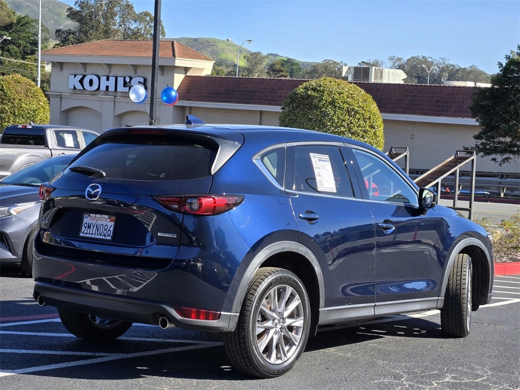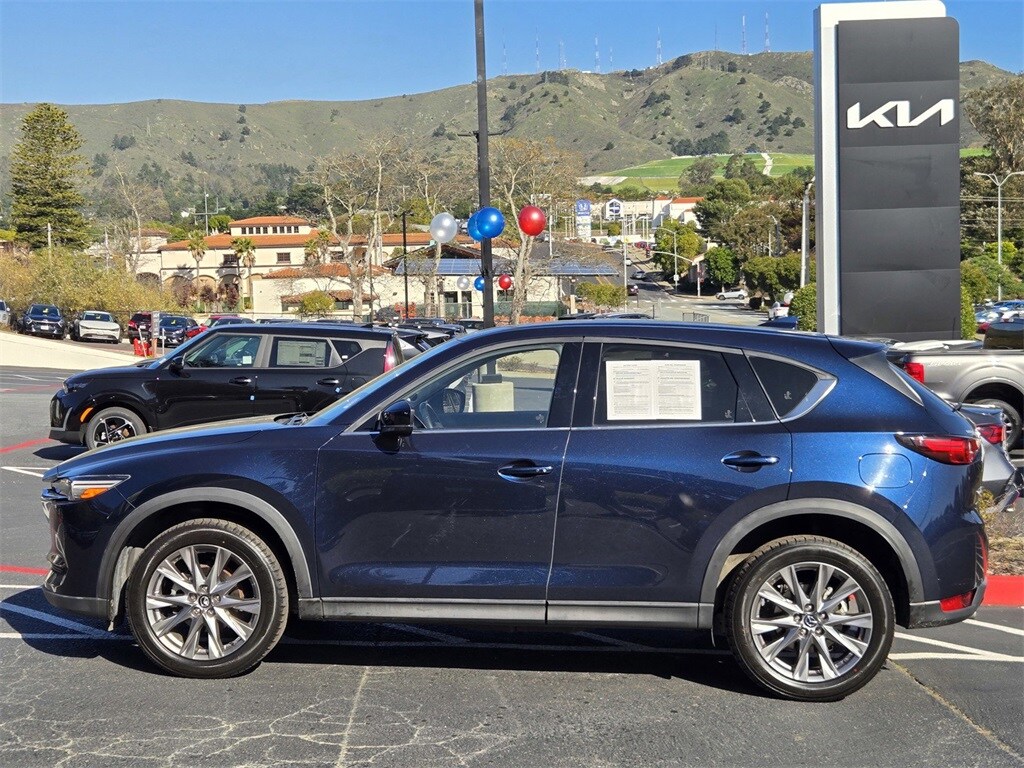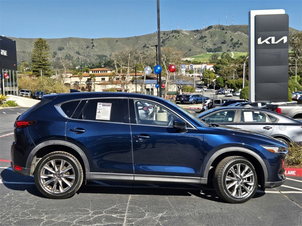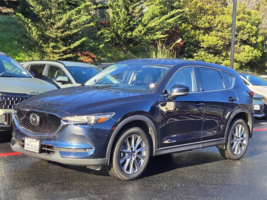 Deep Crystal Blue Mica 2021 Mazda CX-5 Grand Touring FWD 6-Speed Automatic SKYACTIV® 2.5L 4-Cylinder DOHC 16V 112 POINT INSPECTION, 10 Speakers, 4-Wheel Disc Brakes, ABS brakes, Air Conditioning, Alloy wheels, AM/FM radio: SiriusXM, AppLink/Apple CarPlay and Android Auto, Auto High-beam Headlights, Auto-dimming Rear-View mirror, Automatic temperature control, Bose 10-Speaker Premium Audio Sound System, Brake assist, Delay-off headlights, Dual front impact airbags, Dual front side impact airbags, Electronic Stability Control, Emergency communication system: MAZDA CONNECT, Exterior Parking Camera Rear, Four wheel independent suspension, Front anti-roll bar, Front Bucket Seats, Front Center Armrest, Front dual zone A/C, Fully automatic headlights, Garage door transmitter: HomeLink, Heated door mirrors, Heated Front Bucket Seats, Heated front seats, Leather Seat Trim, Leather Shift Knob, Low tire pressure warning, Memory seat, Occupant sensing airbag, Outside temperature display, Overhead airbag, Panic alarm, Power door mirrors, Power driver seat, Power Liftgate, Power moonroof, Power passenger seat, Power steering, Power windows, Radio data system, Radio: AM/FM/HD Audio System, Rain sensing wipers, Rear anti-roll bar, Rear window defroster, Rear window wiper, Remote keyless entry, Speed control, Speed-sensing steering, Split folding rear seat, Steering wheel mounted audio controls, Tachometer, Telescoping steering wheel, Tilt steering wheel, Traction control, Trip computer, Turn signal indicator mirrors, Variably intermittent wipers, Wheels: 19" x 7J Aluminum Alloy.