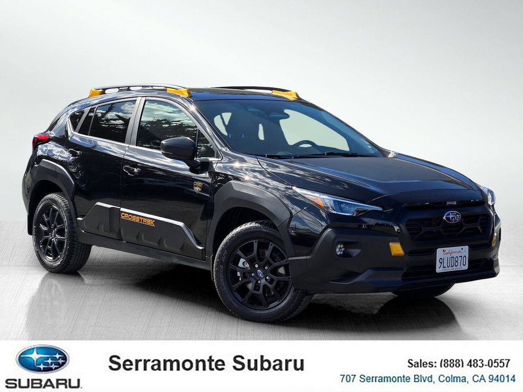 Clean CARFAX. CARFAX One-Owner. Certified. Crystal Black Silica 2024 Subaru Crosstrek Wilderness AWD Lineartronic CVT 2.5L 4-Cylinder DOHC 16V 112 POINT INSPECTION, 10-Way Power Driver's Seat, 4-Wheel Disc Brakes, 6 Speakers, ABS brakes, Air Conditioning, Alloy wheels, AM/FM radio: SiriusXM, Anti-whiplash front head restraints, Auto High-beam Headlights, Automatic temperature control, Brake assist, Dual front impact airbags, Dual front side impact airbags, Electronic Stability Control, Emergency communication system: STARLINK Safety and Security (Subscription Required), Exterior Parking Camera Rear, Four wheel independent suspension, Front anti-roll bar, Front Bucket Seats, Front Center Armrest, Front dual zone A/C, Fully automatic headlights, harman/kardon Aud & Pwr Moonroof & Pwr Driver Seat, harman/kardon Surround Sound Speaker System, Heated door mirrors, Heated Front Bucket Seats, Heated front seats, Knee airbag, Leather Shift Knob, Low tire pressure warning, Occupant sensing airbag, Outside temperature display, Overhead airbag, Panic alarm, Power door mirrors, Power Moonroof, Power steering, Power windows, Radio data system, Radio: Subaru STARLINK 11.6" Multimedia Plus Sys, Rear anti-roll bar, Rear window defroster, Rear window wiper, Remote keyless entry, Security system, Speed control, Speed-sensing steering, Split folding rear seat, Spoiler, Steering wheel mounted audio controls, Tachometer, Telescoping steering wheel, Tilt steering wheel, Traction control, Trip computer, Turn signal indicator mirrors, Variably intermittent wipers, Wheels: 17" x 7.0J Matte Black Aluminum Alloy, Wilderness StarTex Upholstery.
