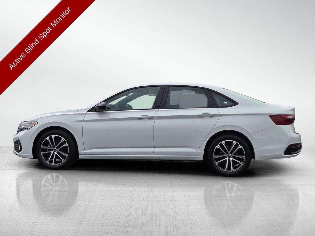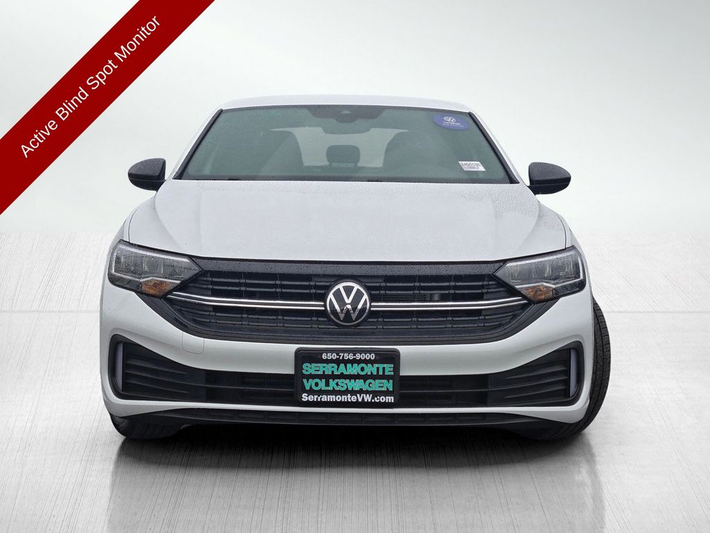 Clean CARFAX. Pure White 2024 Volkswagen Jetta 1.5T Sport FWD 8-Speed Automatic with Tiptronic 1.5L I-4 DI DOHC Turbocharged 112 POINT INSPECTION, Black Cloth, 4 Speakers, 4-Wheel Disc Brakes, ABS brakes, Active Blind Spot Monitor, Air Conditioning, Alloy wheels, Auto-dimming Rear-View mirror, Brake assist, Delay-off headlights, Dual front impact airbags, Dual front side impact airbags, Electronic Stability Control, Emergency communication system: VW Car-Net Safe & Secure 5-year, Exterior Parking Camera Rear, Front anti-roll bar, Front Bucket Seats, Front Center Armrest, Front wheel independent suspension, Fully automatic headlights, Heated door mirrors, Heated Front Seats, Heated front seats, Leather Shift Knob, Leather steering wheel, Low tire pressure warning, Occupant sensing airbag, Outside temperature display, Overhead airbag, Panic alarm, Power door mirrors, Power steering, Power windows, Radio data system, Radio: MIB3 Composition Color w/6.5" Touchscreen, Rain sensing wipers, Rear anti-roll bar, Rear window defroster, Remote keyless entry, Security Wheel Locks & Dust Caps (4 each) w/Key, Speed control, Speed-sensing steering, Split folding rear seat, Steering wheel mounted audio controls, Tachometer, Telescoping steering wheel, Tilt steering wheel, Traction control, Trip computer, Variably intermittent wipers, Wheels: 17" 2-Tone Machined Alloy.